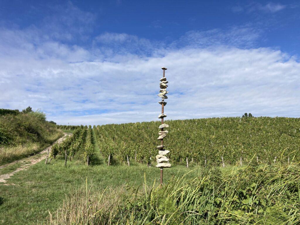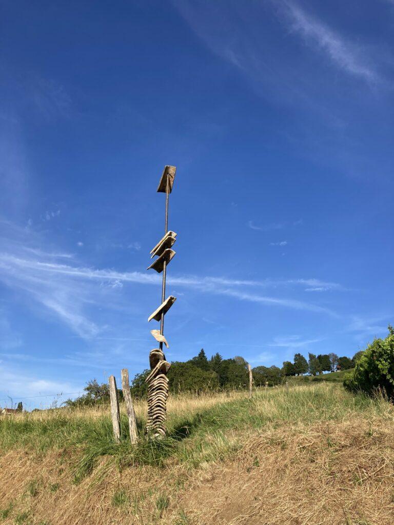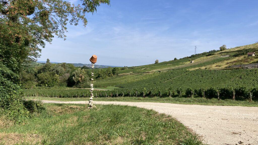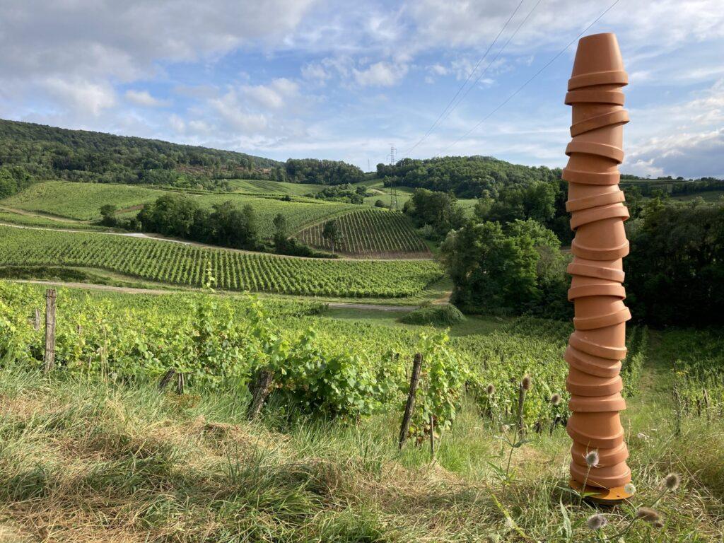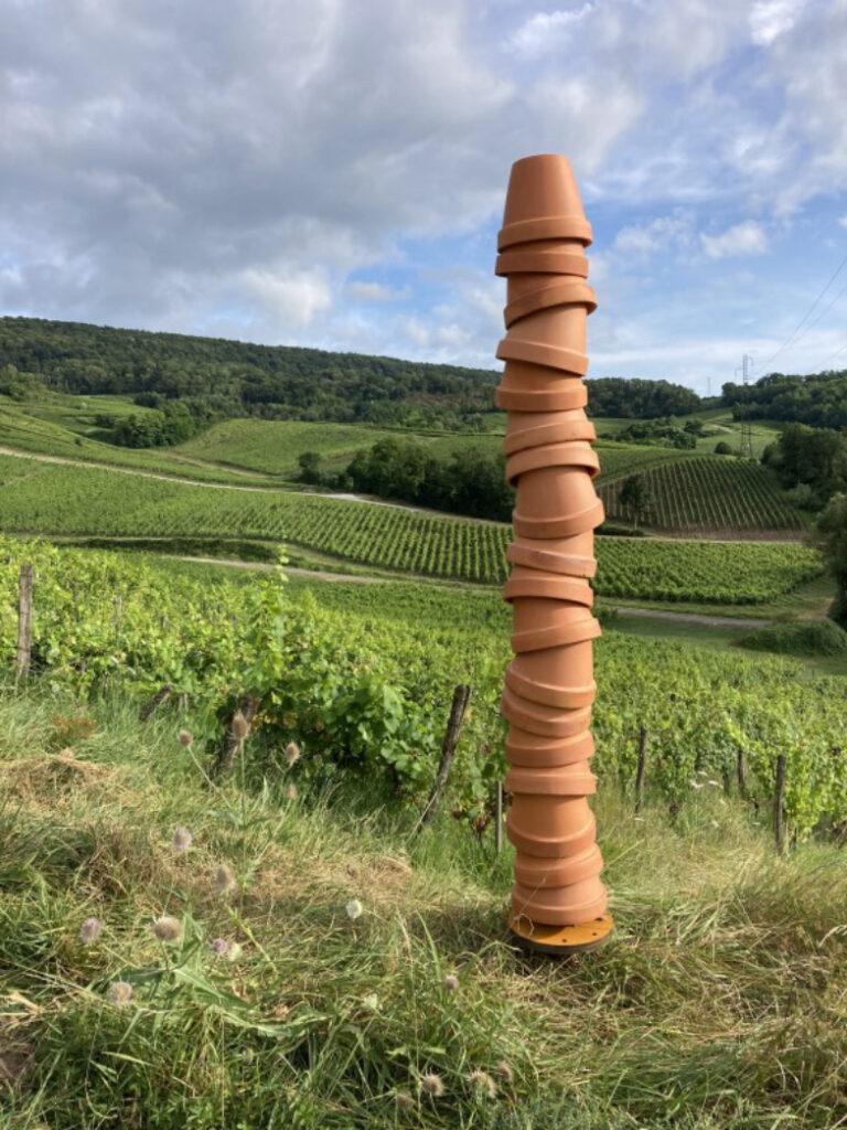Colonne de pots en terre retourné, symbole de la culture maitrisée par l'homme.